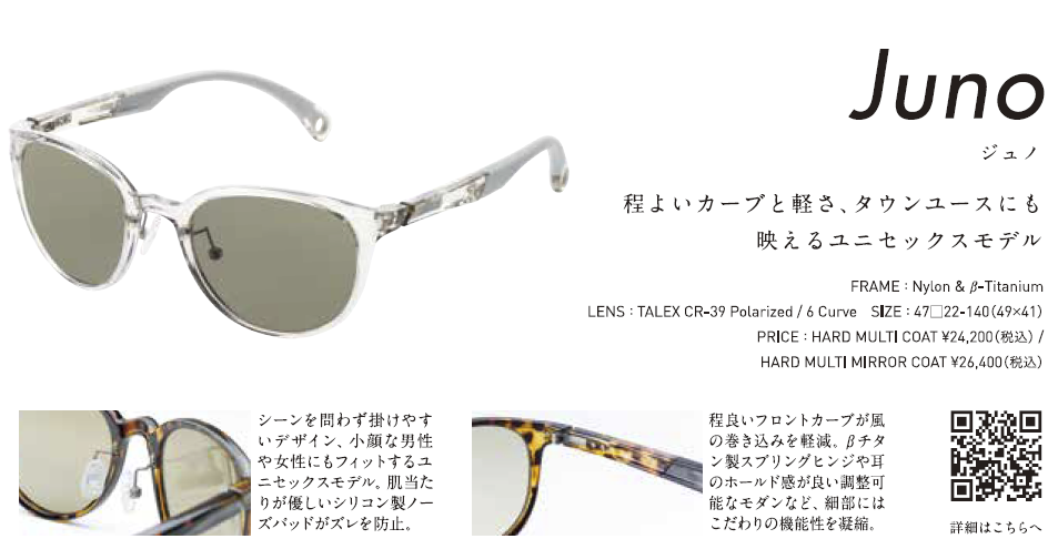 ・Juno轻便且舒适,很适合运动时配戴,适度的前部曲线可减少风阻的影响。